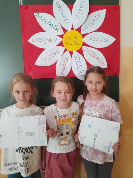 Na wolontaryjnej tablicy pojawiły się plakaty i ogłoszenia inspirujące uczniów naszej szkoły do zaangażowania w pomaganie. Wolontariusze z klas 1-3 prezentowali swoje dobre uczynki na specjalnie przygotowanych pracach plastycznych.