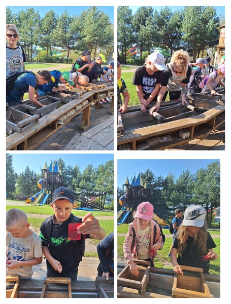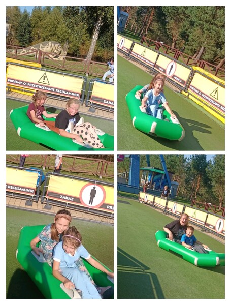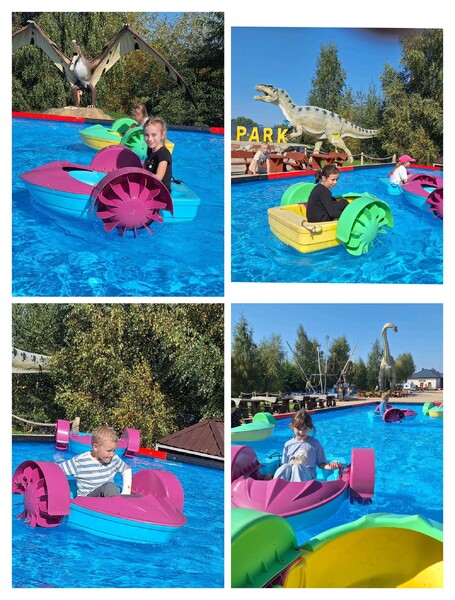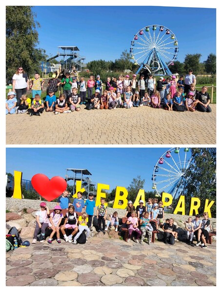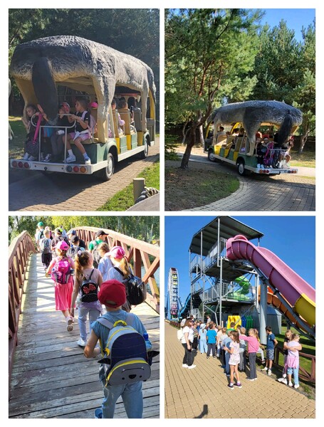 19 września br. uczniowie klasy 2B i 2C z wychowawczyniami udali się na wycieczkę do Rodzinnego Parku Rozrywki – Łeba Park. W programie wycieczki znalazło się mnóstwo zabaw i atrakcji. Uczniowie przeszli zamek strachu, labirynt luster, przejechali się Diabelskim Młynem, jeździli rowerkami wodnymi oraz poszukiwali złota. Na ścieżce przyrodniczej oglądali eksponaty dinozaurów, których rozmiary w naturalnym otoczeniu robiły ogromne wrażenie. Najwięcej radości dostarczyła uczniom pontonowa zjeżdżalnia wodna! Na koniec pobytu w Parku Rozrywki przyszedł czas na integracyjne zabawy na ogromnym placu zabaw i zakup pamiątek.