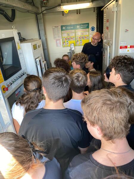 Największą atrakcją wycieczki była możliwość wejścia do wnętrza turbiny wiatrowej. Ósmoklasiści, pod asystą specjalisty, mieli okazję zajrzeć do środka i zobaczyć wszystkie parametry pracy wiatraka. Ta nietypowa atrakcja pozwoliła im poznać technologię działania elektrowni wiatrowej z zupełnie nowej perspektywy.