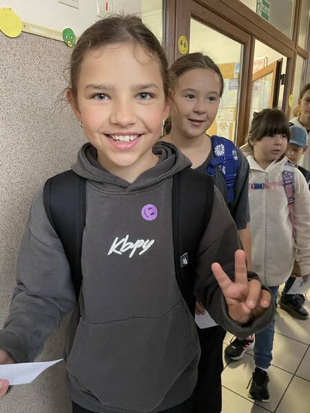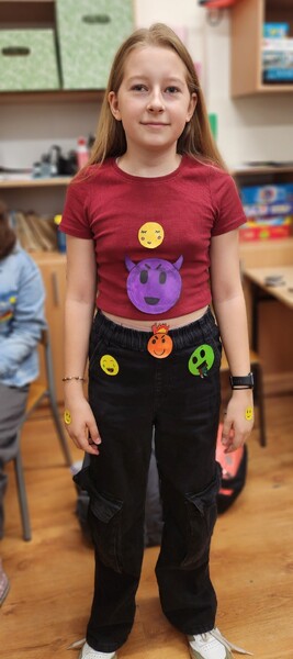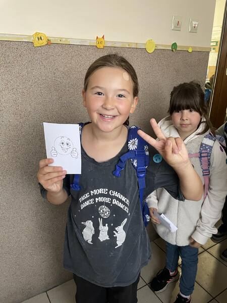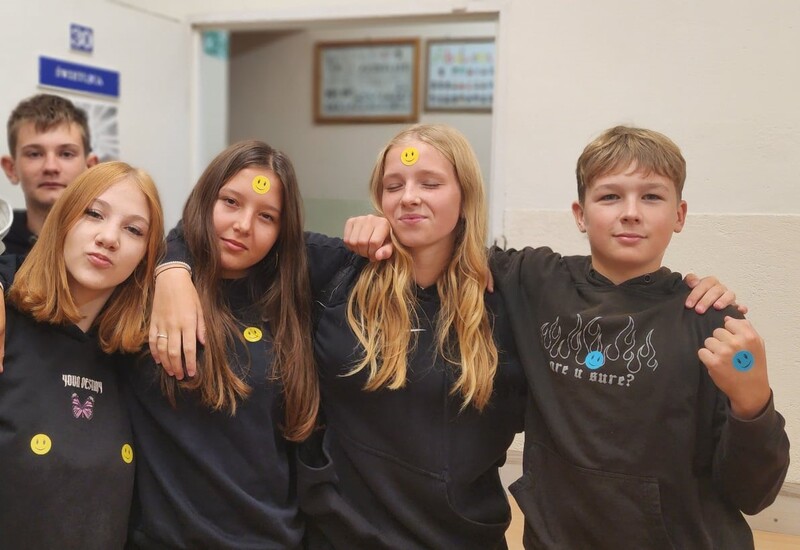 Rozdawaliśmy uśmiechy tego dnia wyjątkowo szczodrze: bezpośrednio, za pomocą karteczek, narysowanego na buzi słoneczka, mini rysunku na tablicy, narysowanej buźce długopisem, gestu, naklejki – ograniczała nas tylko wyobraźnia.