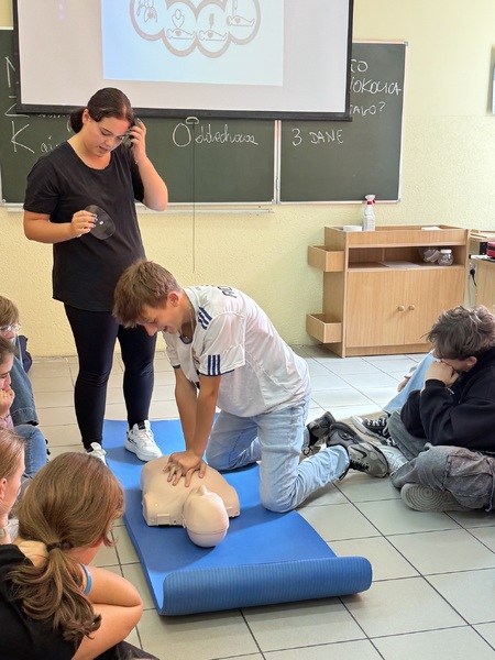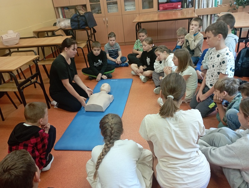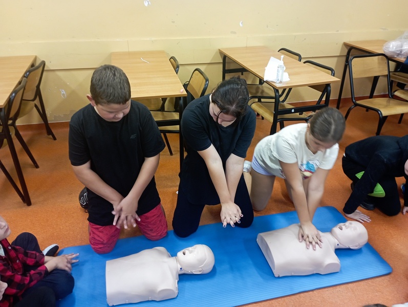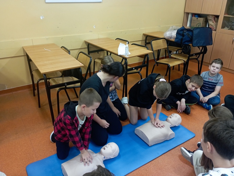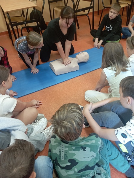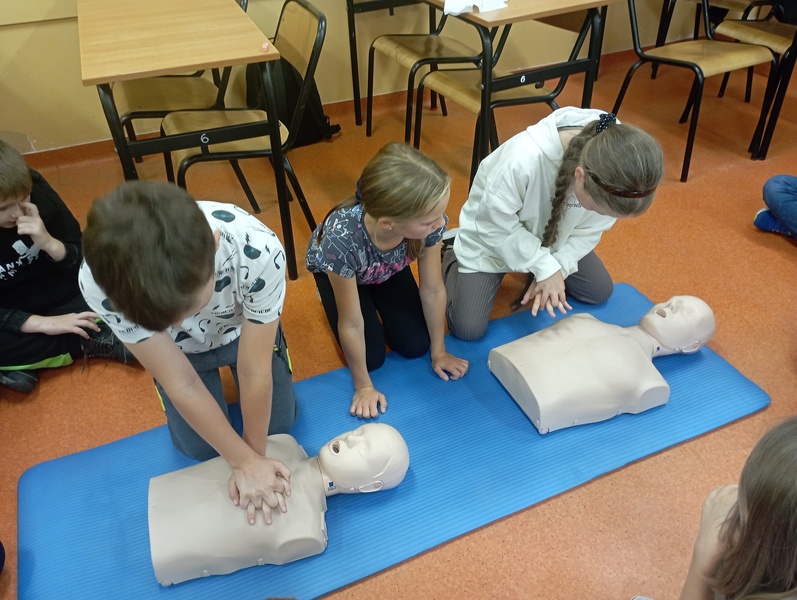 Każdy może uratować komuś życie! Dlatego na zajęciach z wychowawcą będziemy poznawać podstawowe zasady udzielania pierwszej pomocy przedmedycznej. Pierwsze zajęcia w klasie 4C i 7B poprowadziła absolwentka naszej szkoły, studentka pielęgniarstwa, p. Wioletta Brzozowska. Uczniowie zdobyli wiedzę i umiejętności z zakresu resustytacji krążeniowo-oddechowej oraz użycia AED. Ćwiczenia praktyczne pokazały, że udzielanie pomocy nie jest trudne, ale wymaga wiedzy i określonych nawyków. Niebawem kolejne spotkania i praktyczne zajęcia z udzielania pierwszej pomocy.