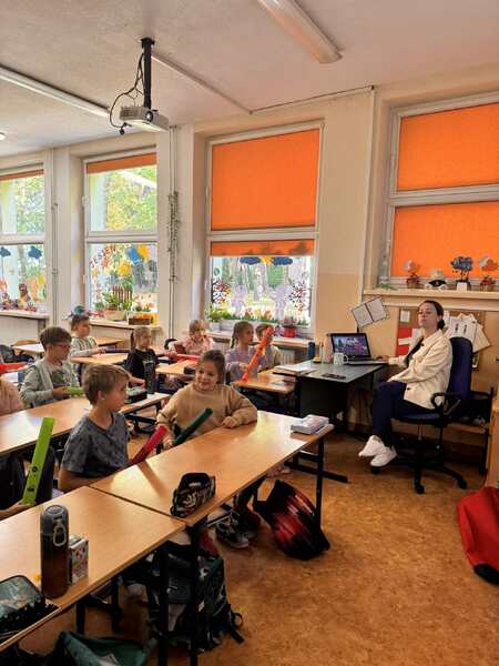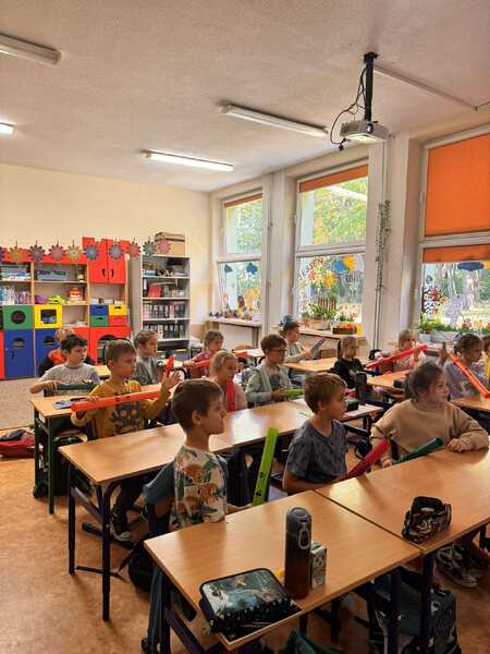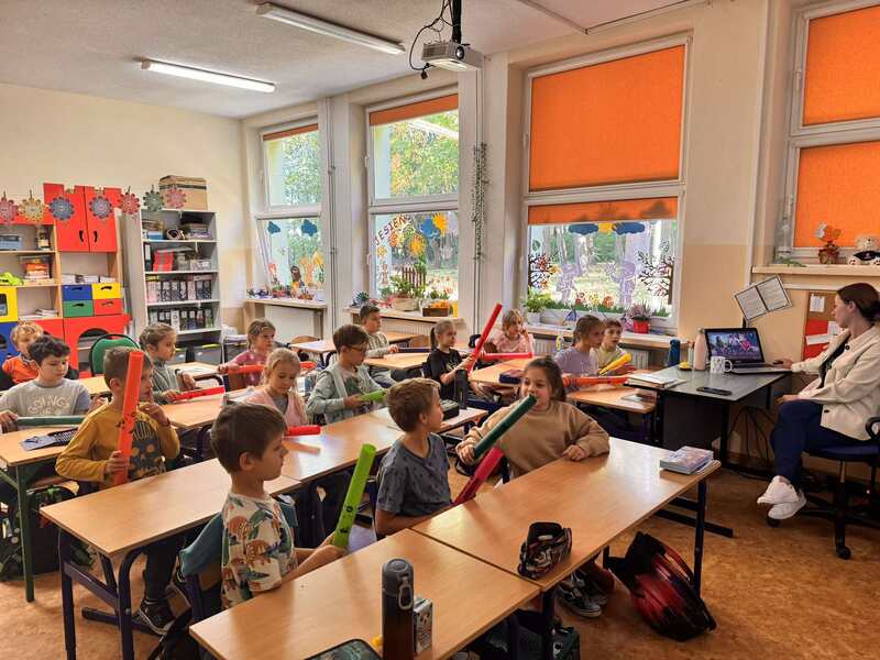 Nauka języka obcego, zwłaszcza dla dzieci, może być zarówno wyzwaniem, jak i wspaniałą przygodą. Jednym z najważniejszych elementów na początku tej drogi jest opanowanie alfabetu. Tradycyjne metody nauczania, takie jak powtarzanie i pisanie, mogą czasami być monotonne. Dlatego w klasie II D sięgnęliśmy po alternatywne sposoby nauki, które angażują różne zmysły i sprawiają, że proces staje się przyjemniejszy i bardziej efektywny. Jedną z takich metod jest nauka alfabetu angielskiego i polskiego w formie muzycznej. Można zapytać dlaczego Muzyka? Odpowiedz jest prosta bowiem muzyka odgrywa ważną rolę w nauczaniu i rozwoju dzieci. Wykorzystanie piosenek i rytmów w nauce alfabetu niesie za sobą wiele korzyści. Nauka alfabetu angielskiego i polskiego w formie muzycznej to metoda, która nie tylko angażuje dzieci, ale także sprawia, że nauka staje się dla nich przyjemnością. Dzięki muzyce dzieci łatwiej zapamiętują poszczególne litery, rozwijają swoje umiejętności fonematyczne i chętniej uczestniczą w zajęciach. Wprowadzenie elementów ruchu i zabawy dodatkowo wspiera proces nauczania, czyniąc go bardziej efektywnym.
