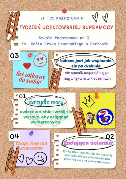 Po raz pierwszy jako szkoła przystąpiliśmy do ogólnopolskiej akcji Tydzień Uczniowskich SuperMocy, która odbywa się w tym roku w dniach 21-25 października. Hasłem tegorocznej akcji jest „Sukces jest jak wspinanie się po drabinie”. Przez cały tydzień będziemy zamieszczać relacje z naszych szkolnych działań.