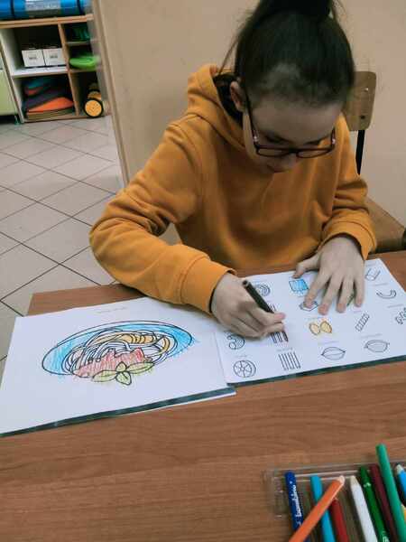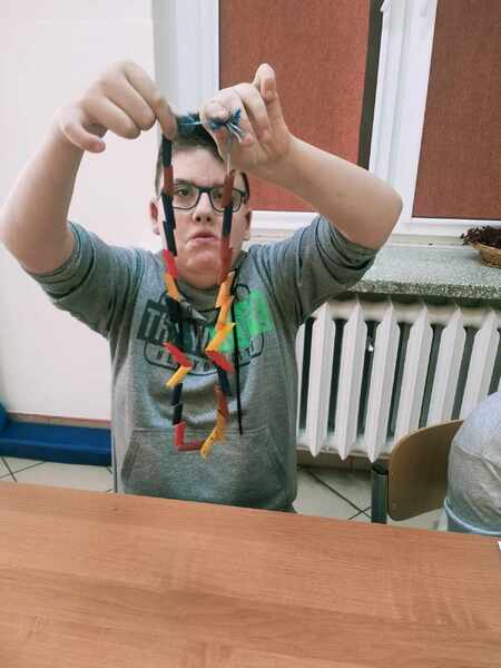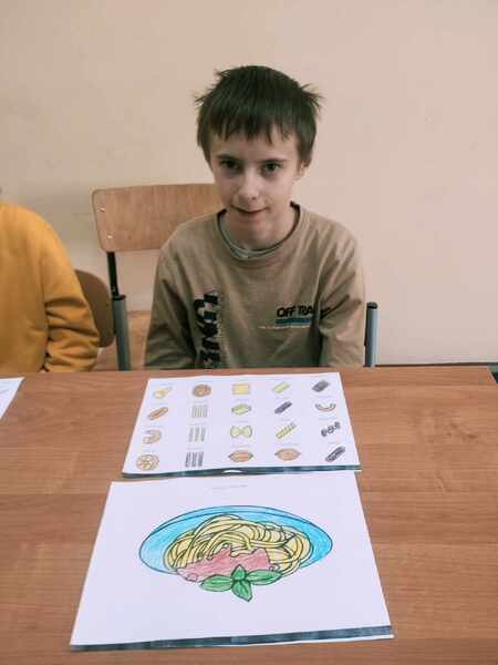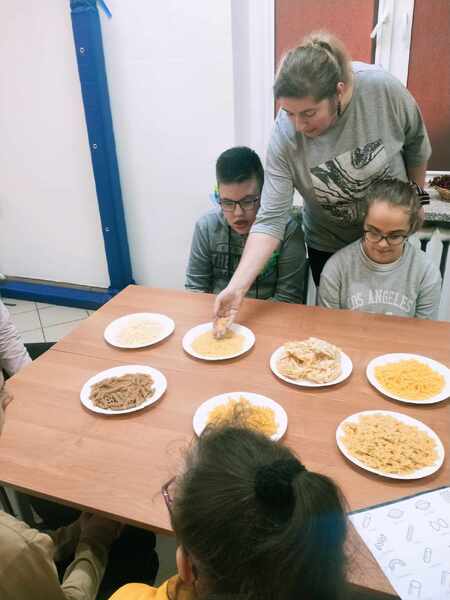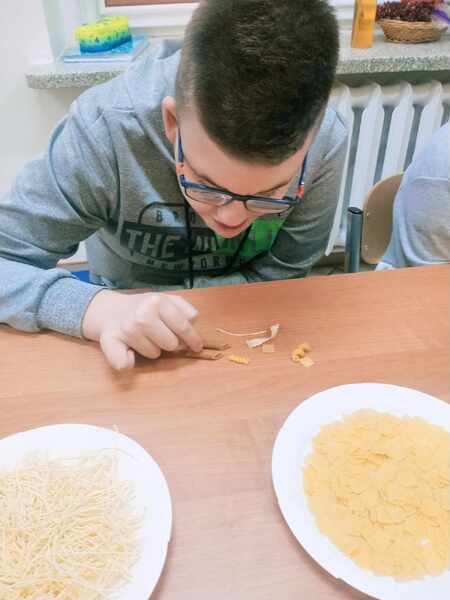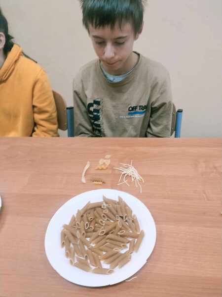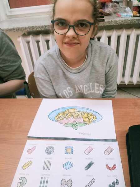 Na zakończenie uczniowie wypełnili karty pracy oraz wykonali pracę plastyczną „Danie z makaronu”.