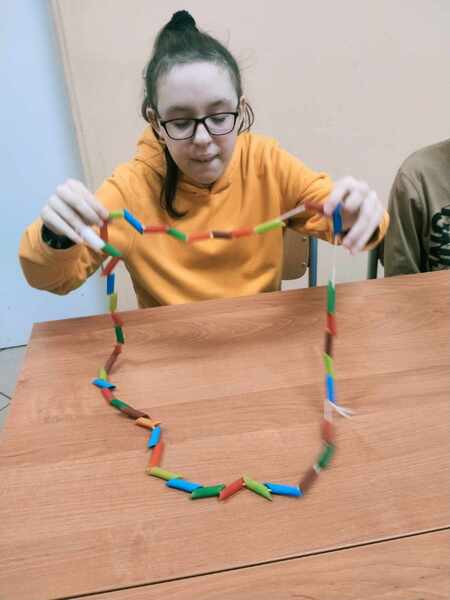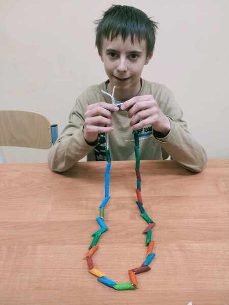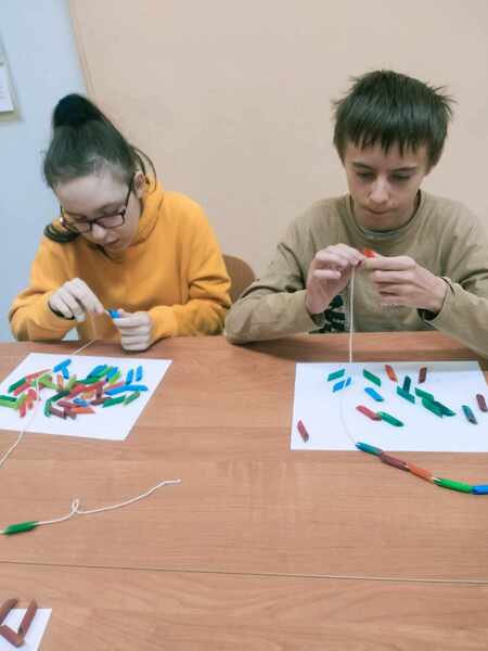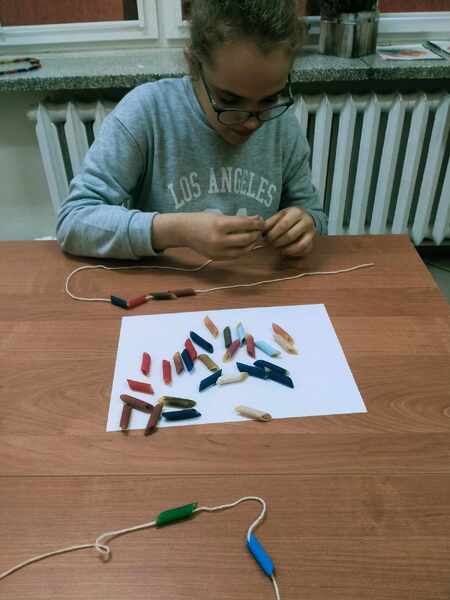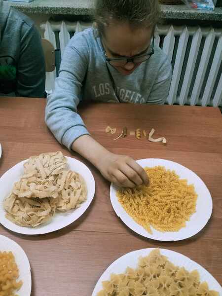 Wstępem do zajęć był film edukacyjny, po którym dzieci segregowały różne gatunki makaronów zgodnie z ich zastosowaniem w potrawach. Kolejnym etapem zajęć było malowanie makaronu farbami, a następnie wykonanie korali.