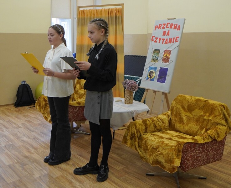 31.10.2024 r. odbyła się w naszej szkole akcja czytelnicza pt. „Przerwa na czytanie”, organizowana w ramach Międzynarodowego Miesiąca Bibliotek Szkolnych. Klasy VI-VIII prezentowały wybraną przez siebie książkę, czytając krótki jej fragment zachęcający do sięgnięcia po nią w wolnym czasie.