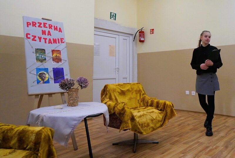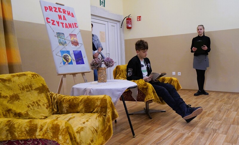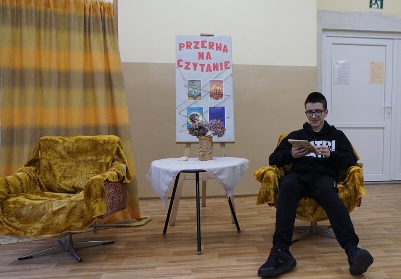 Rychlewski Adam z kl. 8C przeczytał fragment książki pt. „Księżyc wygląda dziś pięknie” N. Zalewskiej, Jachowski Wiktor z kl. 8D przedstawił „Pana Tadeusza” A. Mickiewicza. Natomiast uczniowie klasy 8B zdecydowali się na całkiem inną tematykę, czytając bajkę pt. „Franklin chce mieć hulajnogę”, którą zaprezentował Oskar Burczyk.