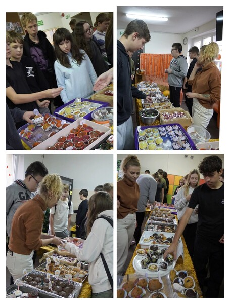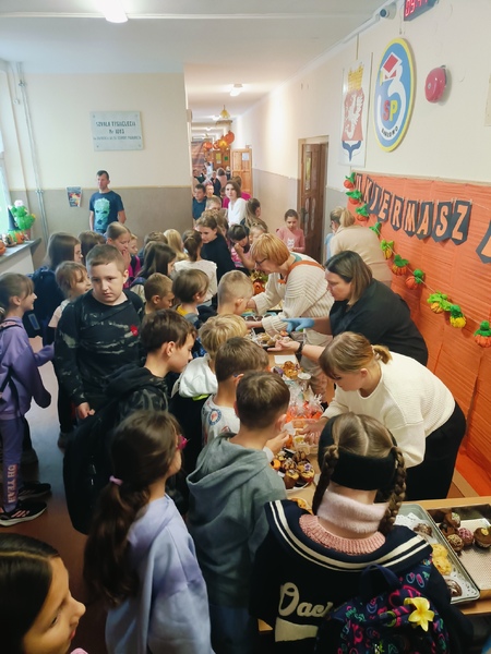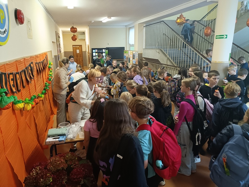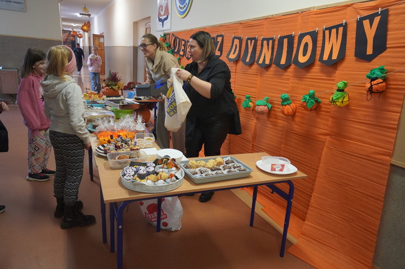 We wtorek 29.10.24 r. organizatorki festiwalu po raz pierwszy zorganizowały w obu budynkach kiermasz dyniowych słodkości. Nieocenione okazało się wsparcie rodziców, dzięki którym nie zostało ani jednej porcji ciacha.