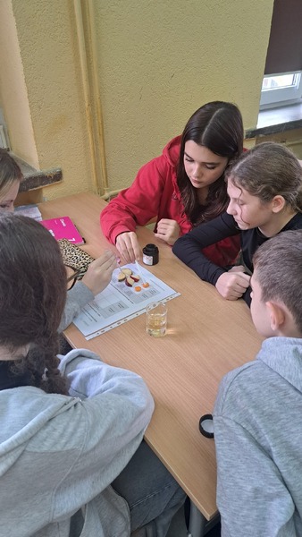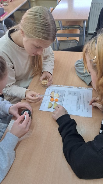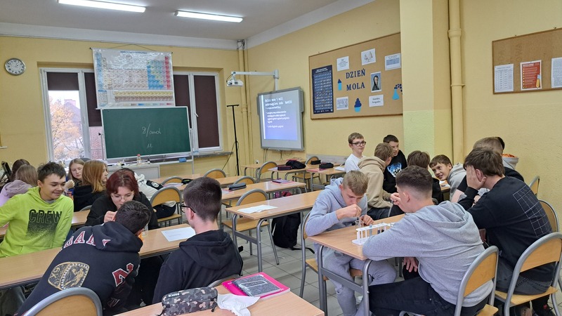 Od kilku lat obchodzimy w naszej szkole Dzień Mola, święto chemików, które przypada 23 października. Data i czas tworzą nam stałą Avogadra, która wynosi 6,02x1023 i jest związana z chemicznym molem. Nasi uczniowie poznali jednostkę liczności materii a następnie wykonali doświadczenia związane z witaminą C, która jest nam niezbędna, szczególnie w sezonie jesienno-zimowym. Przypomnieli rolę i znaczenie tej witaminy dla naszego organizmu oraz badali jej zawartość w różnych produktach spożywczych. Miareczkowali, obserwowali, obliczali oraz wnioskowali. Takie praktyczne działania czynią wiedzę bardziej trwalszą i bardziej przydatną w codziennym życiu.