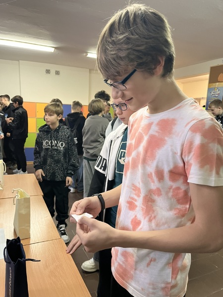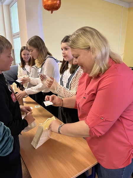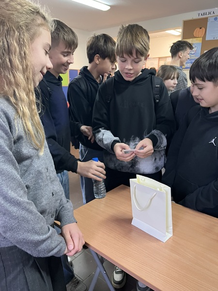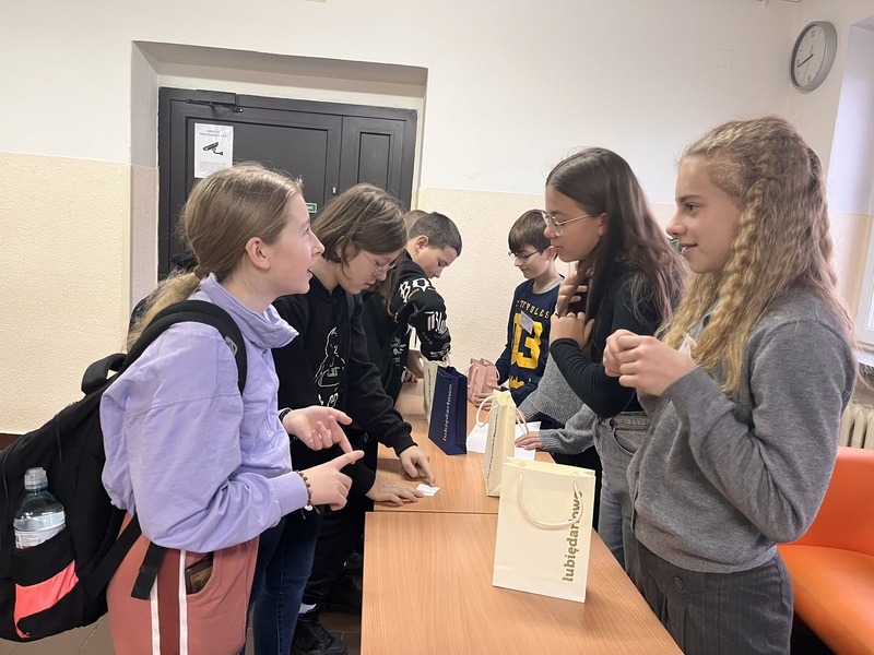 Uczniowie stają się egzaminatorami i sprawdzają znajomość tabliczki mnożenia koleżanek, kolegów i nauczycieli.