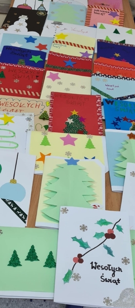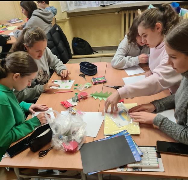 Dnia 21 listopada wolontariusze ze Szkolnego Klubu Wolontariusza „Pomocna Dłoń” we współpracy z wolontariuszami Hospicjum przygotowali świąteczne kartki, które zostaną przekazane dla dzieci z Łotwy.
