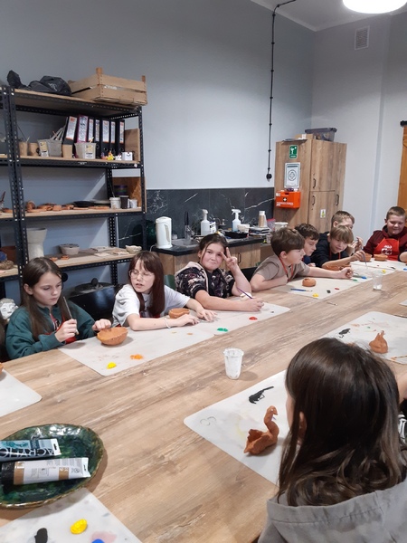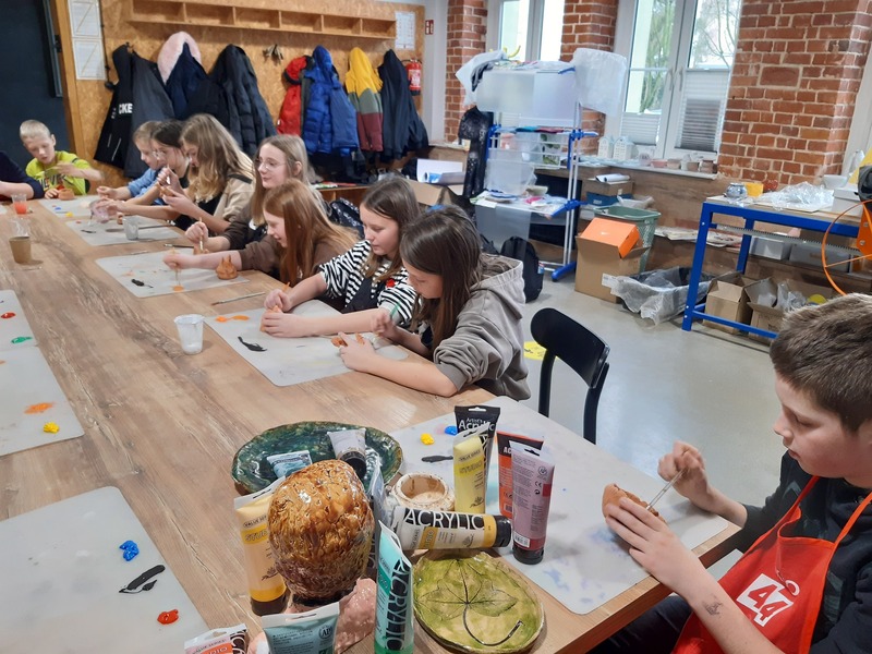 Po tej inspirującej lekcji historii przyszedł czas na praktykę! Klasa jednogłośnie postanowiła, że dziś skupimy się na malowaniu wyrobów z gliny, zamiast ich szkliwienia. Każdy mógł puścić wodze fantazji, tworząc własne, unikalne dzieła sztuki. Od kolorowych miseczek, przez magiczne figurki, po oryginalne miseczki – efekty były naprawdę imponujące!