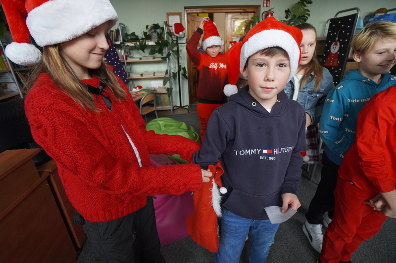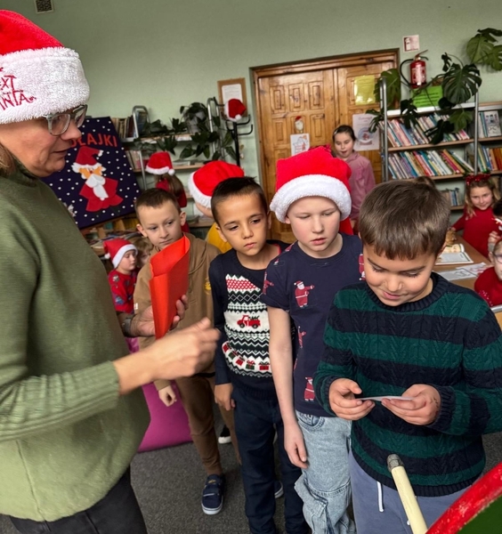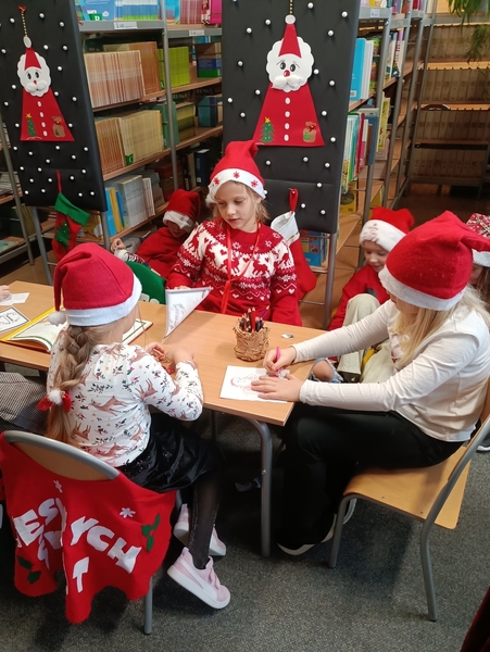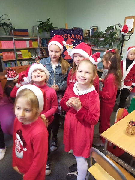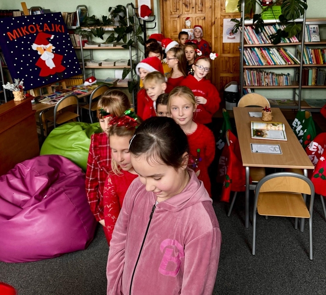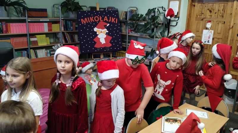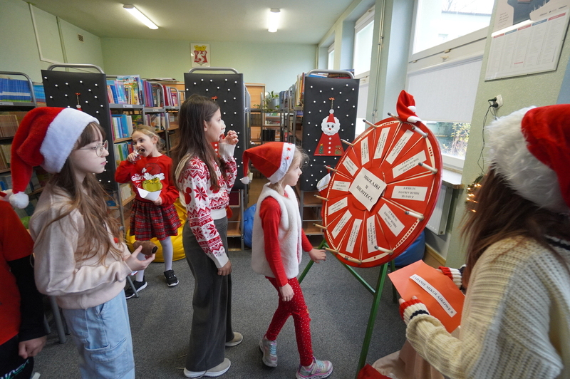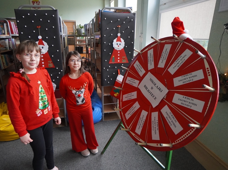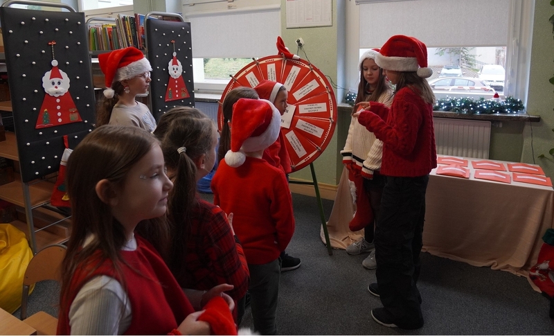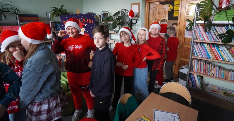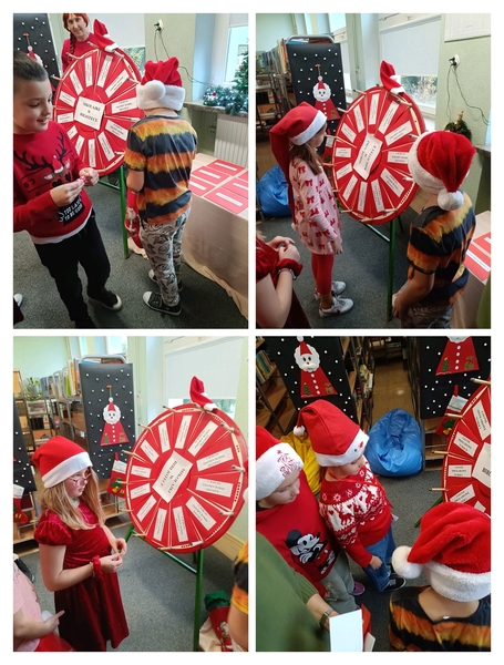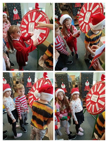 6 grudnia to dzień pełen niespodzianek i odwiedzin Świętego Mikołaja. Biblioteka szkolna również przygotowała w tym dniu dla czytelników klas I-V liczne atrakcje. Przy świątecznych piosenkach uczniowie rozwiązywali zagadki, rebusy, łamigłówki, wykreślanki, odpowiadali na pytania i kolorowali obrazki wylosowane na kole fortuny. Wszyscy, którzy wzięli udział i wykonali zadanie otrzymali słodki upominek.