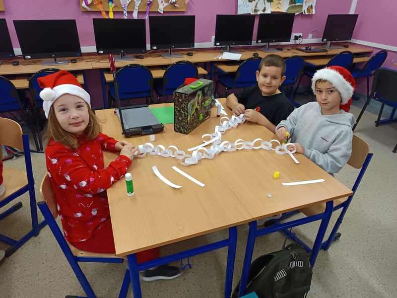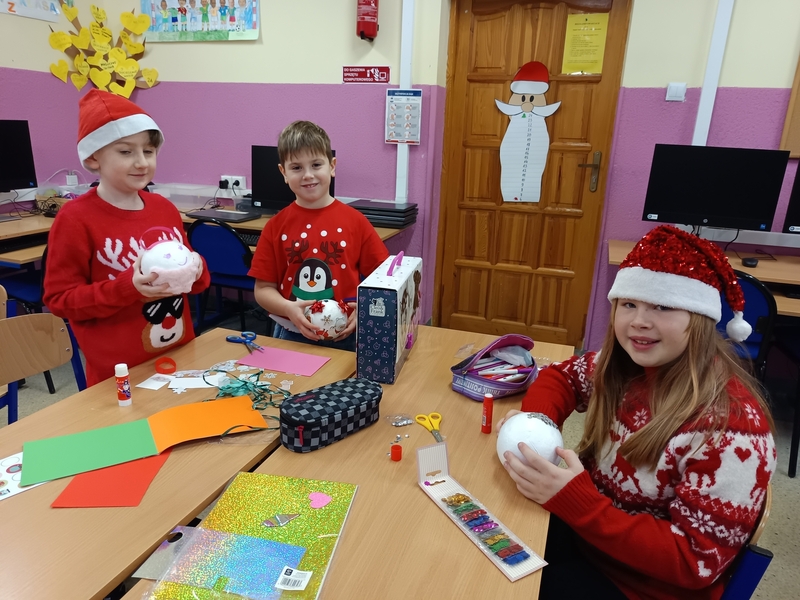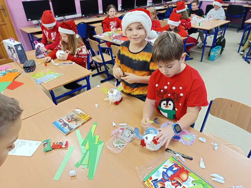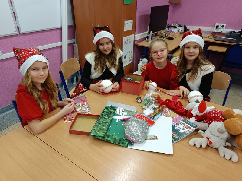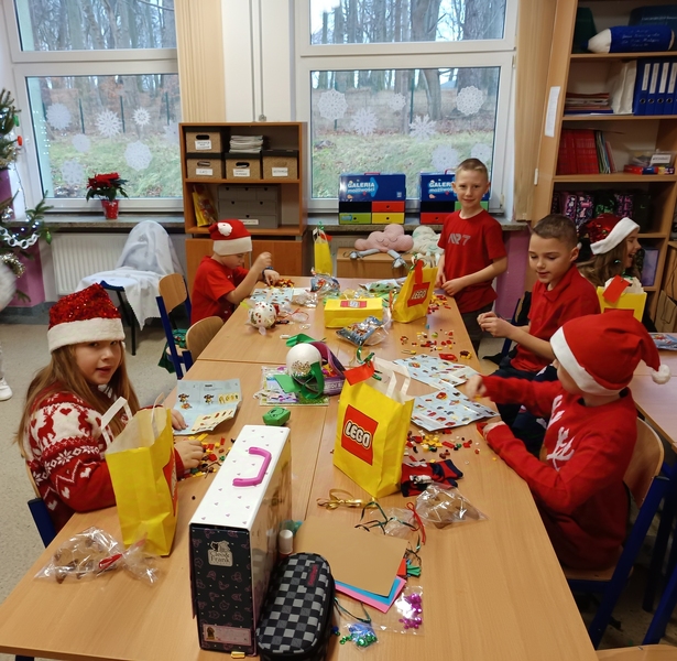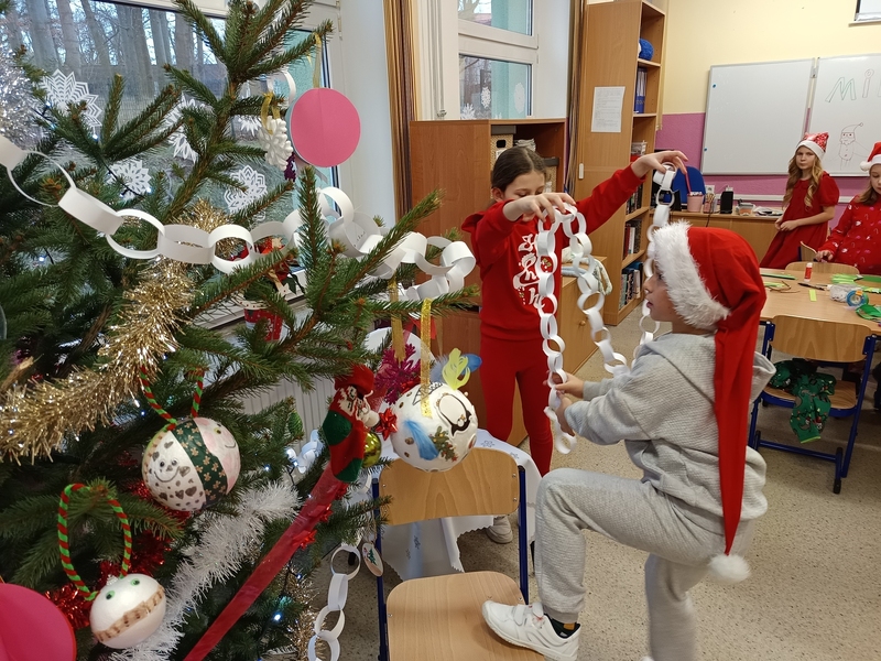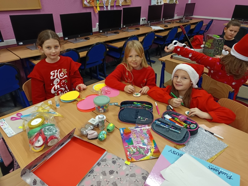 W piątek 6 grudnia klasa 2a obchodziła Mikołajki. Dzień rozpoczął się bardzo pracowicie od posprzątania sali. Uczniowie zamiatali podłogę, układali przybory na półkach, wycierali szafki oraz parapety. Czystą i pachnącą salę mogliśmy potem udekorować i przystroić. Prace były rozdzielone między cztery grupy: pierwszy zespół zajął się przyczepianiem śnieżynek na oknach, drugi zespół tworzył długi łańcuch choinkowy, trzeci zespół zajął się tworzeniem bombek a czwarty zespół był odpowiedzialny za przygotowanie wieńca na drzwi. Wszystkie dzieci były bardzo zaangażowane, radosne i chętnie że sobą współpracowały. Po przygotowaniu sali odwiedził nas Mikołaj, który obdarował dzieci wspaniałymi upominkami.
