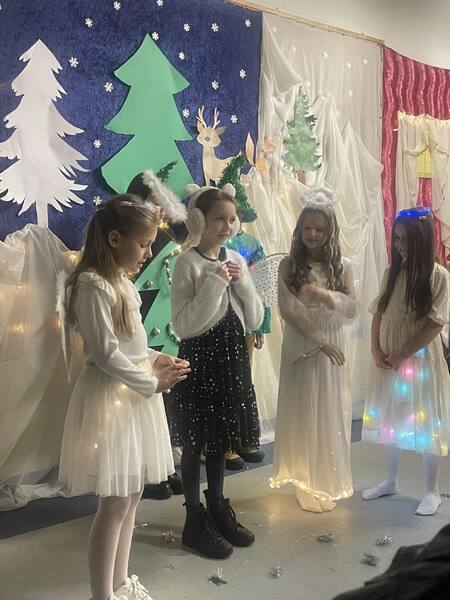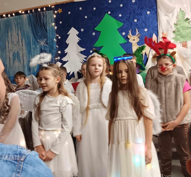 Okres świąteczno-zimowy to czas pełen magii, ciepła i radości. To również doskonała okazja, aby dzieci mogły zaprezentować swoje talenty podczas wyjątkowego przedstawienia przygotowanego specjalnie dla rodziców. Takie wydarzenie nie tylko wzmacnia więzi rodzinne, ale również pozwala dzieciom rozwijać kreatywność i pewność siebie. Uczniowie klasy 3A już kilka tygodni wcześniej rozpoczęli przygotowania do występu. Byli bardzo zaangażowani i przejęci całym wydarzeniem. Przedstawienie zimowo-świąteczne pt. „Królowa Śniegu” długo pozostanie w naszej pamięci, przypominając, że najważniejszym prezentem jest czas spędzony razem i radość płynąca ze wspólnych chwil.