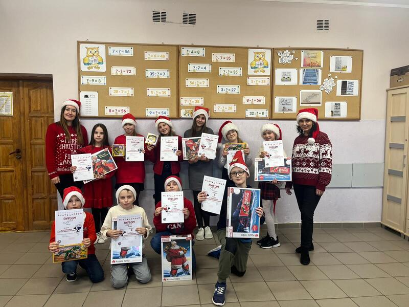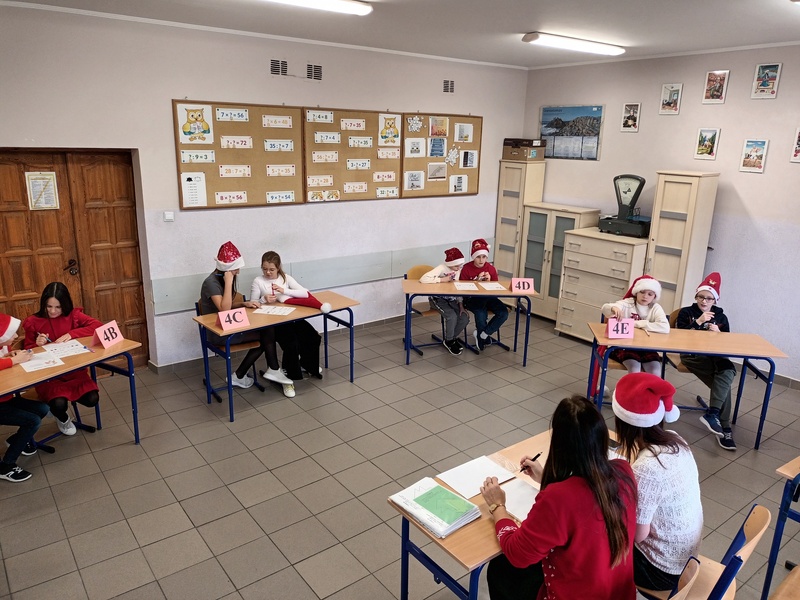 W „Świątecznym Turnieju Matematycznym” bezkonkurencyjna okazała się drużyna klasy IV E: Apolonia Bakalrz i Paweł Maruszak, drugie miejsce zajęła drużyna klasy IV D: Fabian Bochut i Philip Olechno, a trzecie drużyna klasy IV C: Matylda Chlebowska i Amelia Furtak.
