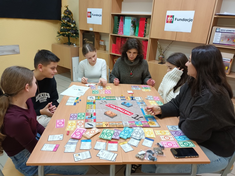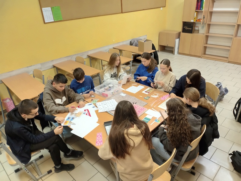 - matematycznych „Mamy w planie rodzinne granie”, na których uczniowie stworzyli matematyczną grę planszową Matmopoly i zagrali w nią z rodzicami w czasie Rodzinnego Wieczoru Gier. Gra została udostępniona również innym uczniom.