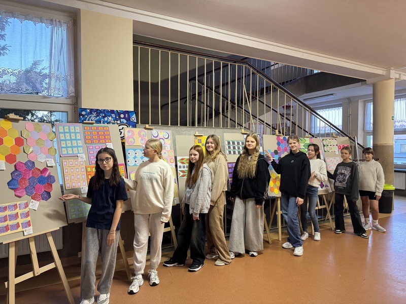 - matematyczno–plastycznych „Parkietaże i mozaiki”, na których uczniowie tworzyli parkietaże i mozaiki z figur geometrycznych; ta część projektu zakończyła się wernisażem wykonanych prac.