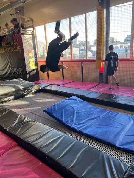 Koniec I semestru za nami więc czas na trochę zabawy. Klasy 7c oraz 8a wraz z wychowawcami i panią pedagog udały się do Koszalina do parku trampolin by poskakać i spędzić towarzysko czas. Uczniowie pokazali, że akrobacje nie są im obce a wśród przyjaciół czas mija znakomicie.