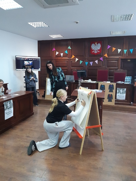 Następnie odbył się konkurs wiedzy prawniczej, który pozwolił uczestnikom sprawdzić i utrwalić zdobyte podczas warsztatów informacje. To była świetna okazja do nauki przez zabawę!