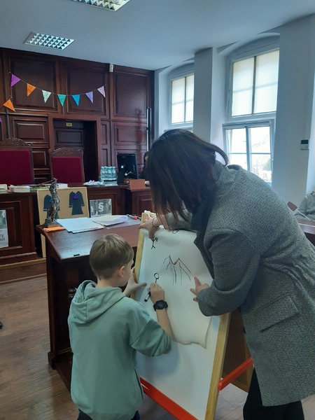 Uczniowie klas 5C i 5D wraz z wychowawczyniami oraz opiekunami mieli wyjątkową możliwość uczestniczyć w warsztatach prowadzonych przez panią sędzię Emilię Błażewicz. Zajęcia odbyły się w prawdziwej sali rozpraw z okazji obchodów Dni Edukacji Prawnej. Spotkanie było niezwykle ciekawe, emocjonujące i bardzo przydatne.