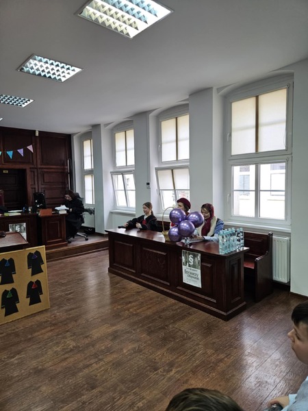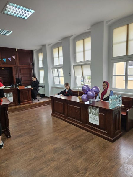 W środę, 12.03.2025 r. klasa 4E z wychowawczynią - p. Marzeną Kolanek oraz opiekunem - p. Małgorzatą Brzozowską pojechała do Sądu Rejonowego w Sławnie w ramach obchodów Dnia Edukacji Prawnej. Spotkanie odbyło się w jednej z największych sal Sądu Rejonowego w Sławnie.