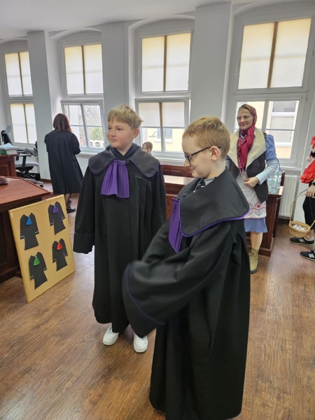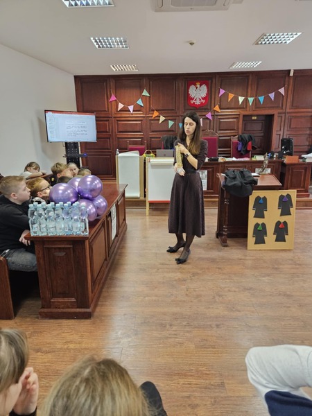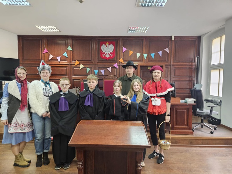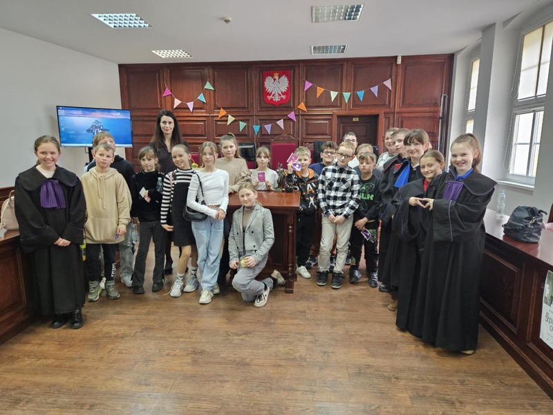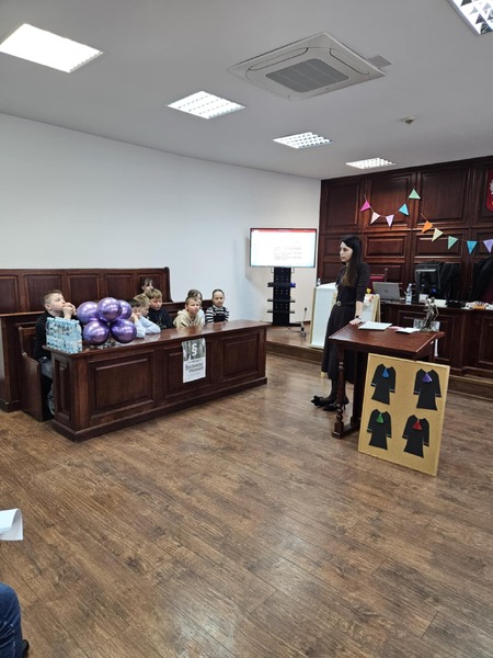 Na początku dzieci otrzymały zasób wiadomości dotyczących terminologii prawniczej. Następnie, wzięły udział w warsztatach dotyczących hejtu, mediacji, przeciwdziałania przemocy, a także uczestniczyły w symulacji rozprawy na temat znanej i lubianej bajki o Czerwonym Kapturku, którą poprowadziła Pani sędzia Emilia Błażewicz. Uczniowie założyli togi i godnie reprezentowali wymiar sprawiedliwości. Dzięki temu mogli lepiej zrozumieć, jak ważne jest przestrzeganie prawa. Poza tym otrzymali zasób informacji na temat pracy Pani Kurator. Pod koniec spotkania odbył się konkurs wiedzy prawniczej, który pozwolił uczestnikom sprawdzić i utrwalić zdobyte podczas warsztatów informacje. To była wyjątkowa okazja do nauki przez zabawę!