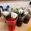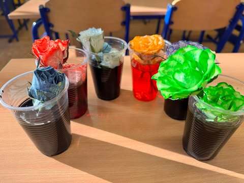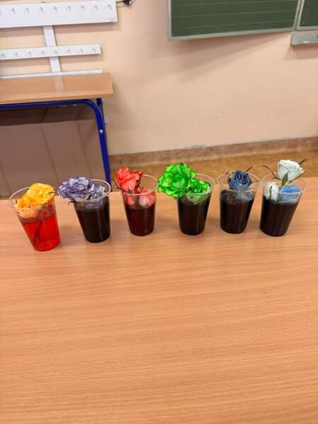 Do naszego eksperymentu użyliśmy białych kwiatów, które umieściliśmy w plastikowych kubeczkach z wodą zabarwioną różnymi barwnikami spożywczymi. Już po kilku godzinach zaczęliśmy zauważać pierwsze zmiany. Kwiaty powoli zaczęły przybierać kolory wody, w której stały. Po dwóch dniach efekt był oszałamiający – białe płatki zmieniły się w intensywne, żywe barwy, tworząc niezwykły, tęczowy bukiet.