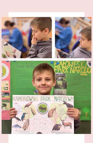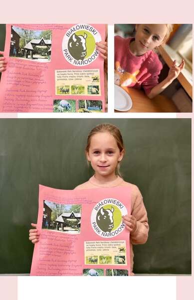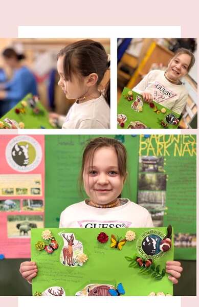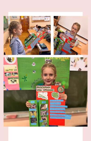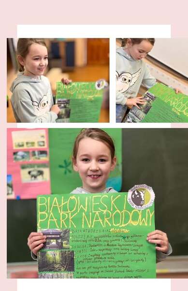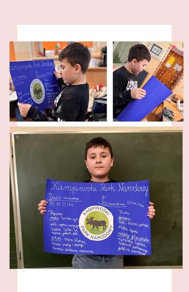 Dzieci przygotowały plansze o rozmiarze A3 na brystolu, które zachwycały estetyką i starannością wykonania. Na każdej planszy znalazły się piękne zdjęcia przedstawiające malownicze krajobrazy parków, a także ciekawe informacje i ciekawostki dotyczące ich historii, lokalizacji oraz różnorodności biologicznej. W szczególności skupiono się na opisaniu zwierzęcych mieszkańców, którzy są prawdziwymi symbolami tych obszarów chronionych. Plansze stały się wizualnym przewodnikiem po świecie natury, inspirując do odkrywania jego tajemnic.