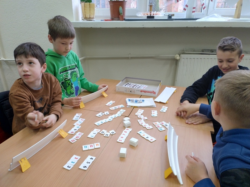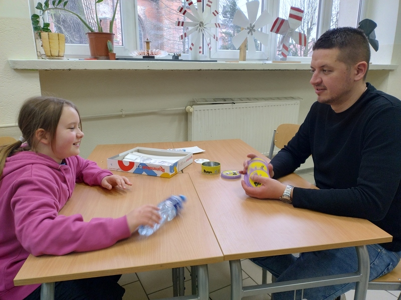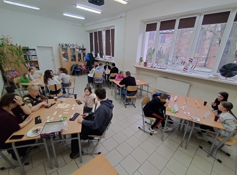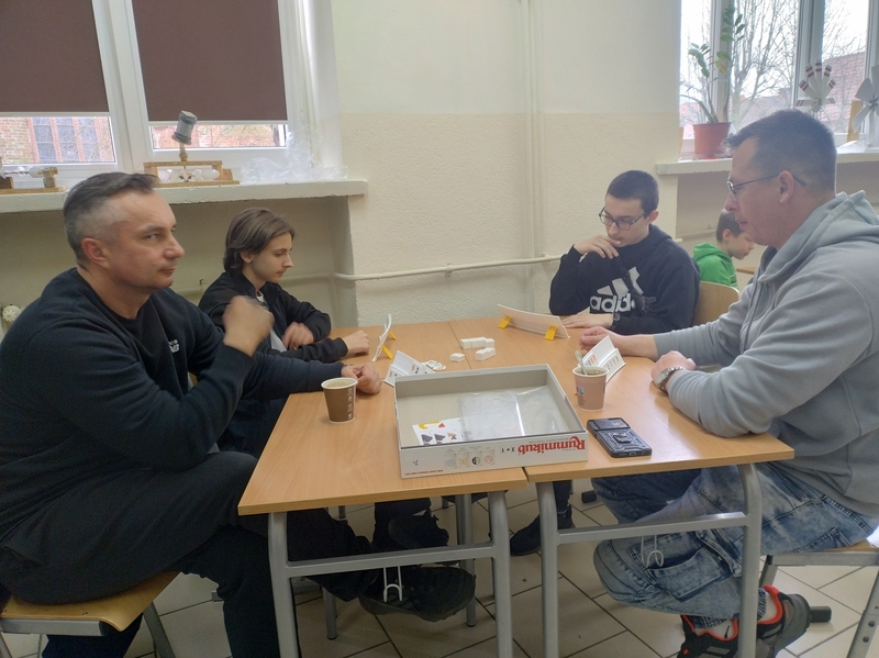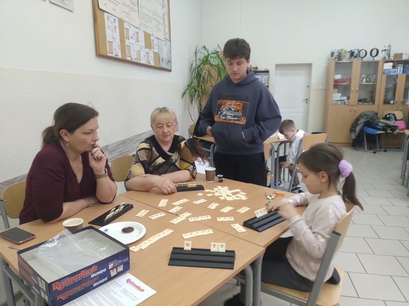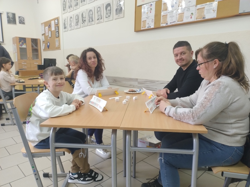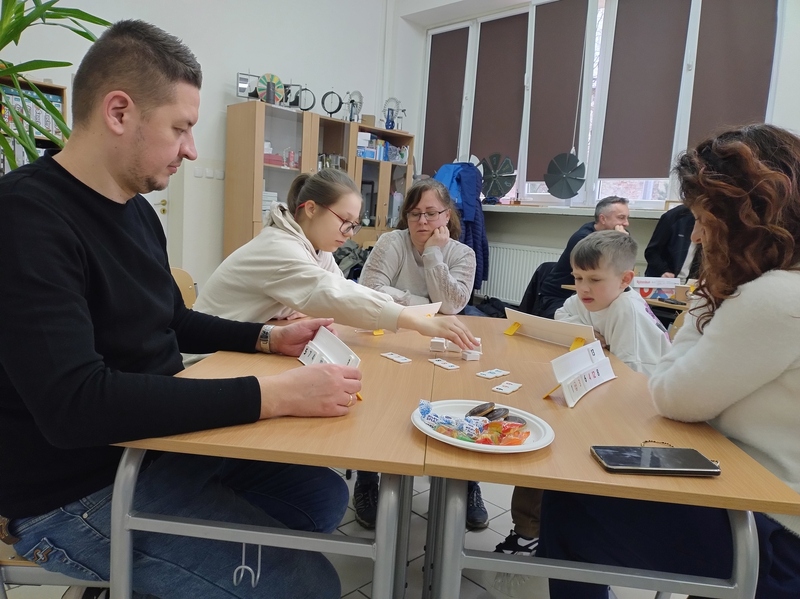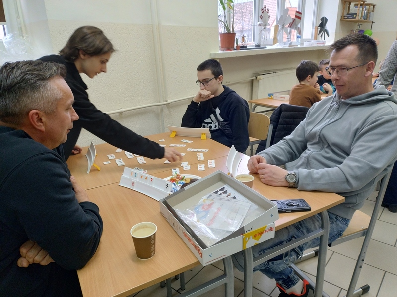 Każdy mógł znaleźć coś dla siebie – od prostych gier dla najmłodszych po bardziej wymagające strategie dla starszych. Uczniowie z entuzjazmem tłumaczyli zasady, a dorośli z zapałem włączali się do gry. To był wyjątkowy czas spędzony razem – bez pośpiechu i ekranów, za to z uśmiechem i dobrym humorem.