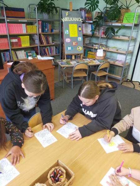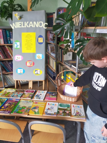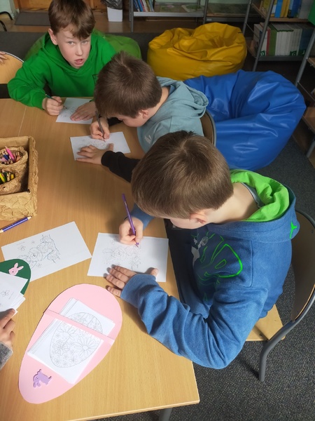 W dniach 14 - 15 kwietnia br. w bibliotece szkolnej „Czytuś” uczniowie klas I-VIII brali udział w akcji pt. „Tropem wielkanocnego zajączka”. Młodsi czytelnicy szukali pisanek, które zajączek pochował z: zagadkami, łamigłówkami, rebusami, wykreślankami i kolorowankami wiosenno-wielkanocnymi.