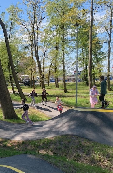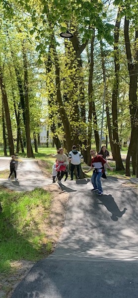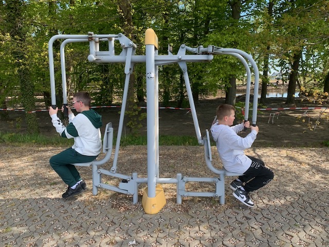 My nauczyciele staramy się na lekcjach wychowania fizycznego zaproponować dzieciom jak najszerszy zakres aktywności ruchowej. Poprzez propagowanie różnych dyscyplin sportu chcemy sprzyjać rozwijaniu u uczniów zdrowych nawyków i pozytywnego podejścia do aktywności fizycznej. W tym celu z klasą 4e udaliśmy się w ramach dwóch zblokowanych jednostek lekcyjnych na siłownię plenerową oraz pumptrack. Uczniowie korzystali z szeregu atrakcji na świeżym powietrzu, z radością ćwiczyli wszystkie grupy mięśniowe, biegali, bawili się na różne sposoby dbając o swoją kondycję fizyczną. Te coraz bardziej popularne formy aktywności fizycznej stanowiły doskonałą alternatywę dla standardowych lekcji wf czy innych sposobów spędzania czasu, były ciekawym doświadczeniem. Przebywanie na łonie natury pozytywnie wpłynęły na ich samopoczucie i poprawę nastroju oraz dotlenienie organizmu. Wspólne ćwiczenia na świeżym powietrzu na miejskich obiektach sportowych dostarczyły wszystkim uczniom wielu niezapomnianych wrażeń, sprzyjały rozwijaniu zainteresowania sportem. Uczniowie wrócili do szkoły zmęczeni, ale bardzo zadowoleni.