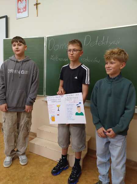 Program Domowych Detektywów zakończył się „Wieczorem Jasia i Małgosi”, który odbył się w szkole, 13 maja 2025 roku. Uczniowie klas piątych wraz z wychowawcami oraz pedagogami szkolnymi zorganizowali „Wieczór Jasia i Małgosi”, który miał na celu stworzyć okazję do wspólnej zabawy oraz integracji młodzieży, ich rodziców oraz nauczycieli. Podczas tego wieczoru uczniowie zaprezentowali rodzicom własne prace w formie plakatów, zabaw oraz gier, które wykonane były pod kierunkiem wychowawców i pedagogów szkolnych.