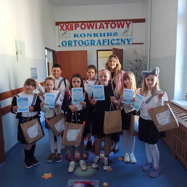 20 maja 2025 r. w Szkole Podstawowej nr 3 w Sławnie odbył się XXII Powiatowy Konkurs Ortograficzny dla uczniów klas trzecich. Udział wzięli najlepsi uczniowie z całego powiatu, a wśród nich nasi reprezentanci: Kalina Brylowska kl. 3A, Oliwia Sendera kl. 3A, Nadia Krasowska kl. 3B, Kacper Wiśniewski kl. 3B, Jagoda Sip kl. 3C, Zuzanna Wrycza kl. 3C, Olesia Florkevych kl. 3D i Róża Kowalczewska kl. 3D.