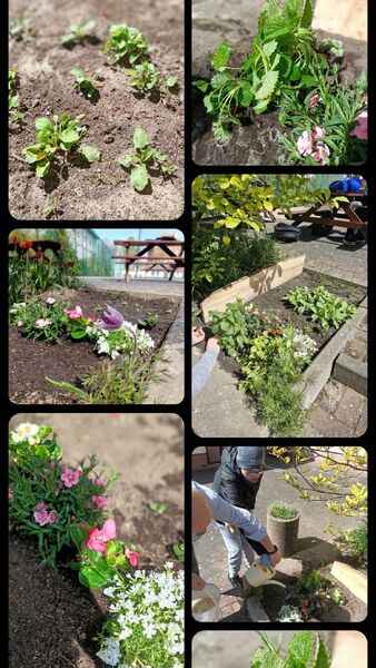 Troszkę wiosny w te deszczowe, majowe dni. Fragmenty naszego malutkiego, przyszkolnego ogródka. Jeszcze troszkę i będziemy zajadać się rzodkiewką!