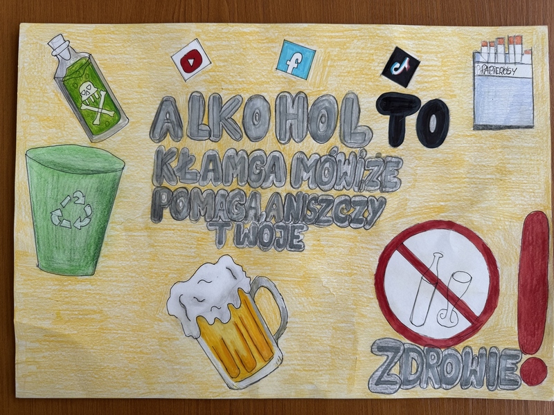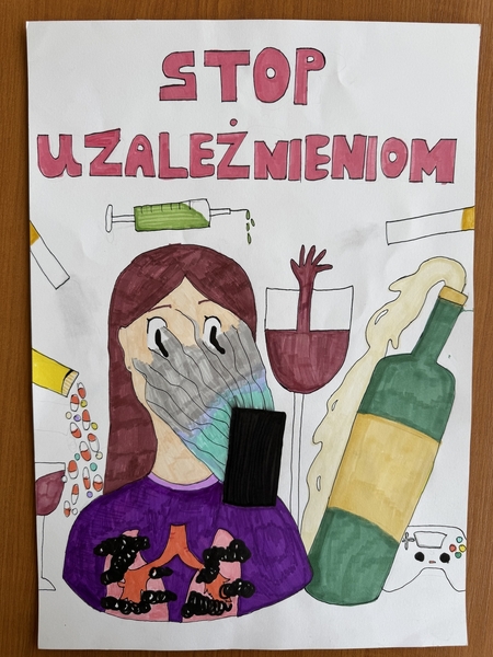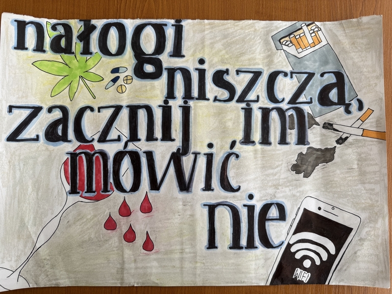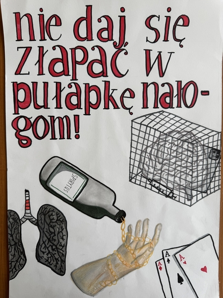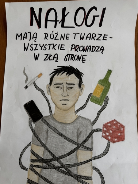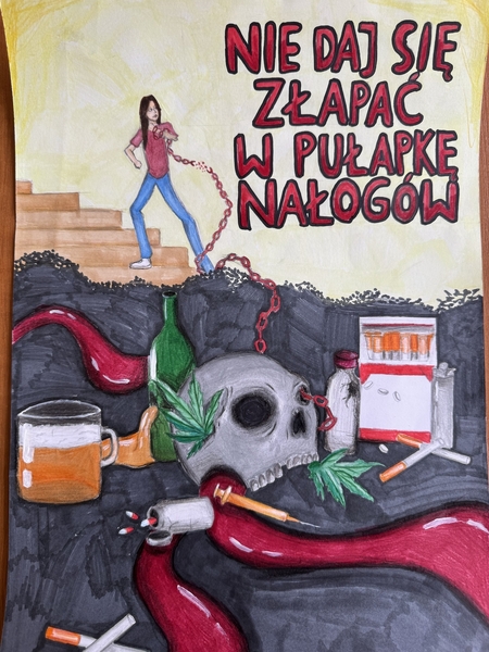Pod hasłem „Nałóg Twoim wrogiem” uczniowie z całego powiatu wyrazili swoje przemyślenia na temat profilaktyki uzależnień w formie plastycznej w IV Powiatowym Konkursie Plastycznym „WOLNI OD UZALEŻNIEŃ” – edycja 2024/2025!.