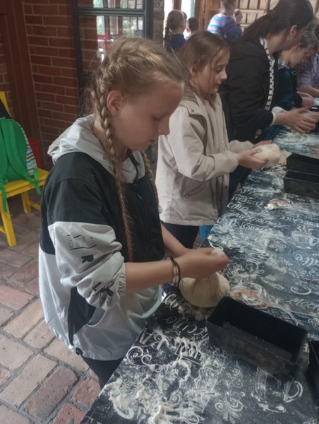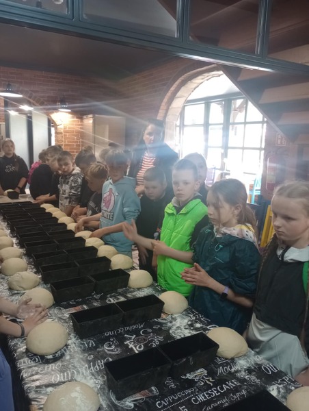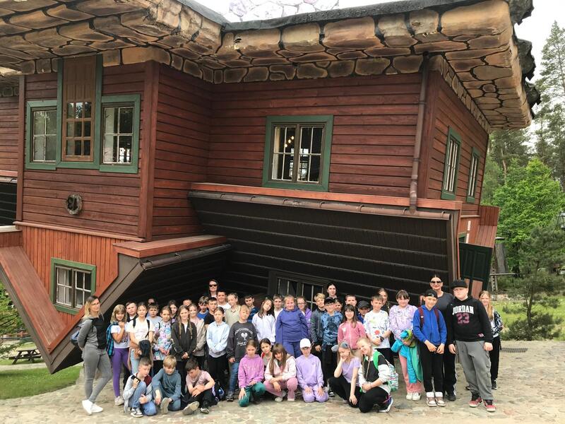 Po przyjeździe na miejsce, dzieci miały możliwość zwiedzania jednego z najsłynniejszych punktów – Domu do Góry Nogami. Wejście do tego niezwykłego budynku wywołało wiele śmiechu i zdziwienia. Chodzenie po suficie okazało się prawdziwym wyzwaniem. Uczniowie poznali też historię Sybiraków, odwiedzając Dom Sybiraka oraz wagony, którymi wywożono Polaków na Syberię. Była to chwila refleksji i zadumy nad trudną historią naszego kraju. Kolejną atrakcją były najdłuższe na świecie deski oraz największe na świecie pianino, na którym miały możliwość spróbowania swoich sił w grze na tym nietypowym instrumencie. Po zwiedzaniu przyszedł czas na wypiek chleba, gdzie pod okiem tamtejszego specjalisty uczniowie mieli możliwość samodzielnego wygniatania ciasta według kaszubskiej receptury i wypieczenia chleba z foremki w specjalnym piecu. Był też czas na pyszny obiad i relaks, gdzie dzieci mogły zjeść lody, a także pobawić się na świeżym powietrzu.