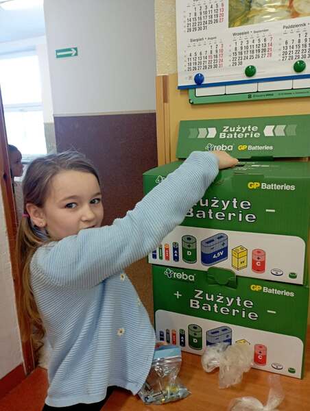 Jednym z działań była szkolna zbiórka baterii. Celem akcji jest promocja selektywnej zbiórki i recyklingu zużytych baterii. Zbiórka pod patronatem firmy Reba Organizacja Odzysku S.A. prowadzona jest przez cały rok szkolny, gdyż chcemy zwrócić uwagę na właściwe postępowanie wobec szczególnie niebezpiecznych odpadów, jakim są baterie i akumulatory. Ich właściwa zbiórka i utylizacja pomagają zapobiegać zatruciu wody i gleby metalami ciężkimi.