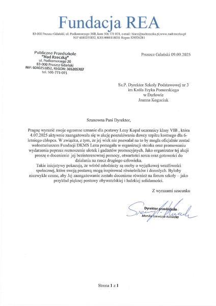 Jest nam niezmiernie miło, że w naszej szkolnej społeczności są tak wspaniałe osoby. Jej postawa pokazuje, jak ważna jest edukacja w zakresie wrażliwości społecznej.