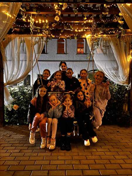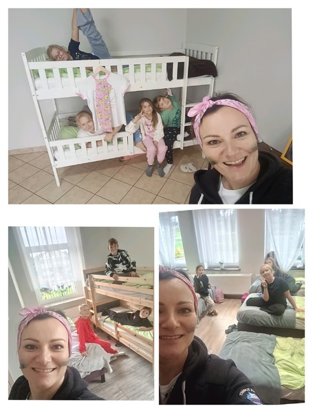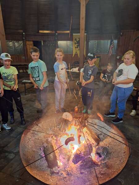Wieczorem wszyscy spotkali się przy ognisku. Było pieczenie kiełbasek, wspólne śpiewy i tańce. Atmosfera była wyjątkowa – pełna radości, śmiechu i integracji.