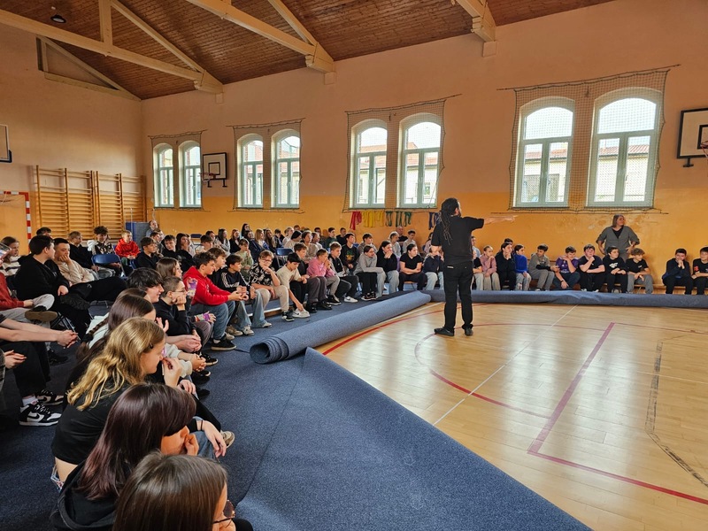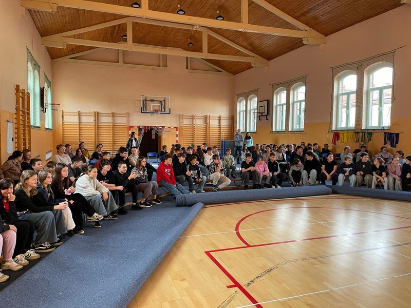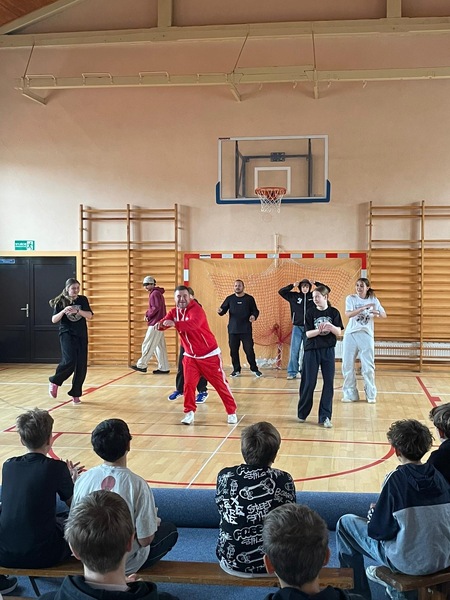 W ramach Kampanii „Dzieciństwo bez przemocy” Pan Robert Gorgol z Darłowskiego Ośrodka Kultury zaprosił na zajęcia profilaktyczne Szkołę Tańca N.A.S.A pod kierunkiem Instruktora Marcina Grzybowskiego. W dniu 04 listopada 2025 r. uczniowie klas 6-7 uczestniczyli w warsztatach pod hasłem „Taniec łączy, hejt dzieli”, których celem było nie tylko promowanie pasji i rozwoju osobistego, ale także szerzenie świadomości na temat hejtu i sposobów radzenia sobie z nim.