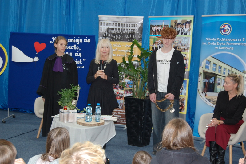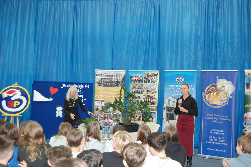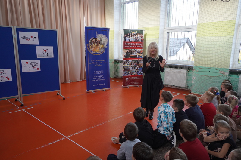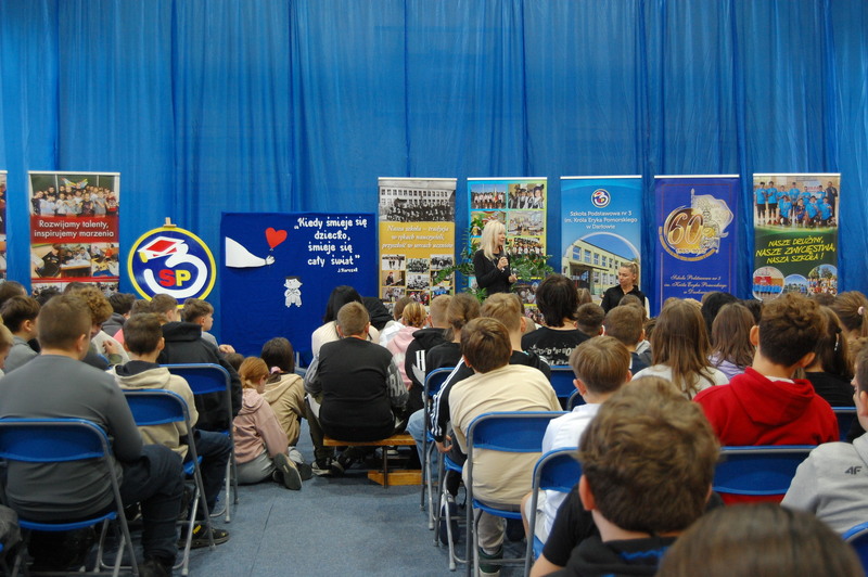 5 listopada w naszej szkole odbyło się wyjątkowe spotkanie z sędzią Anną Marią Wesołowską – znaną nie tylko z popularnego programu telewizyjnego „Sędzia Anna Maria Wesołowska”, ale również z ogromnego zaangażowania w edukację prawną dzieci, młodzieży, rodziców i nauczycieli. W wydarzeniu uczestniczyli uczniowie klas 1- 8, a także rodzice i nauczyciele. Spotkanie odbyło się dzięki wsparciu finansowemu Miasta Darłowa w ramach ogólnopolskiej kampanii „Dzieciństwo bez przemocy”.