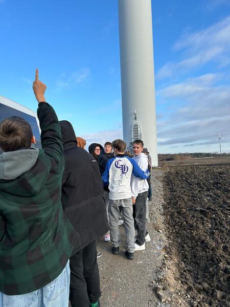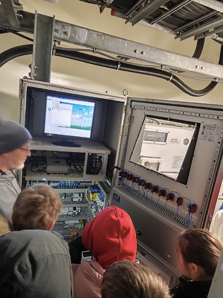 Największą atrakcją wycieczki była możliwość wejścia do wnętrza turbiny wiatrowej. Ósmoklasiści, pod asystą specjalisty, mieli okazję zajrzeć do środka i zobaczyć wszystkie parametry pracy wiatraka. Ta nietypowa atrakcja pozwoliła im poznać technologię działania elektrowni wiatrowej z zupełnie nowej perspektywy.