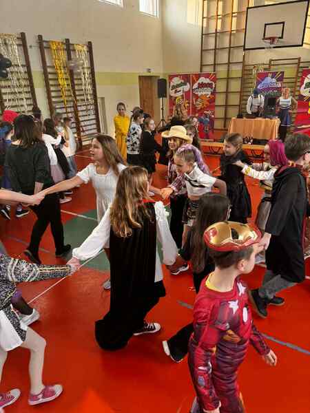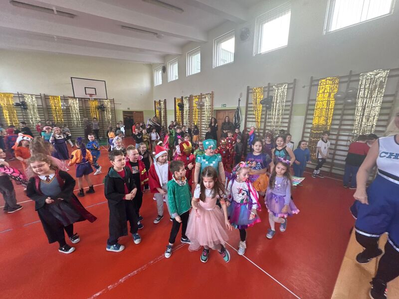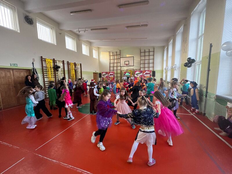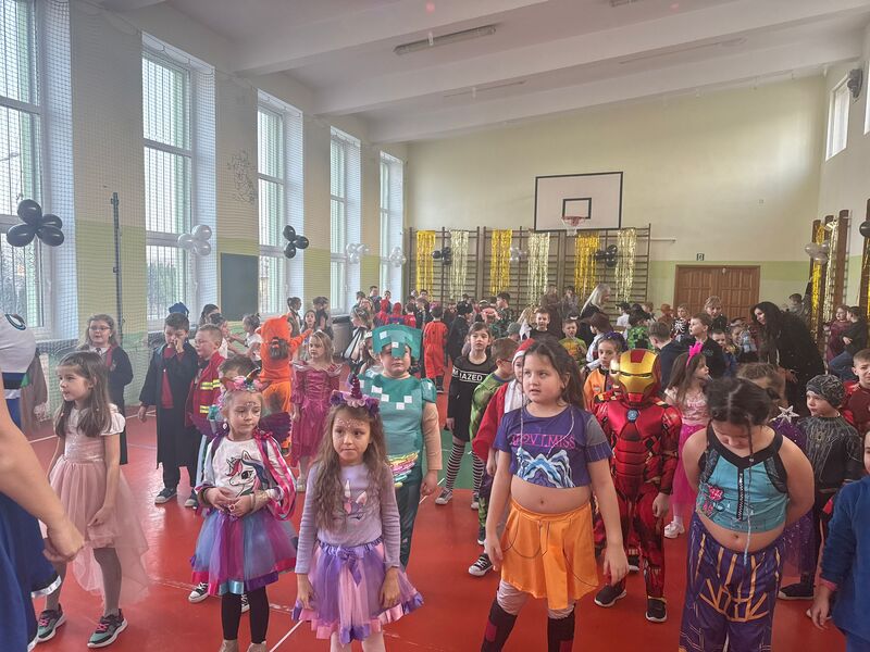 22 stycznia szkolna sala zamieniła się w prawdziwą salę balową. Muzyka zachęcała do tańca, a uśmiechy nie schodziły z twarzy uczniów. Można było spotkać księżniczki, piosenkarki, superbohaterów, postacie gier, wróżki, zwierzątka czy rycerzy. Każdy strój był wyjątkowy i pokazywał dziecięcą kreatywność oraz pomysłowość rodziców.