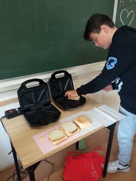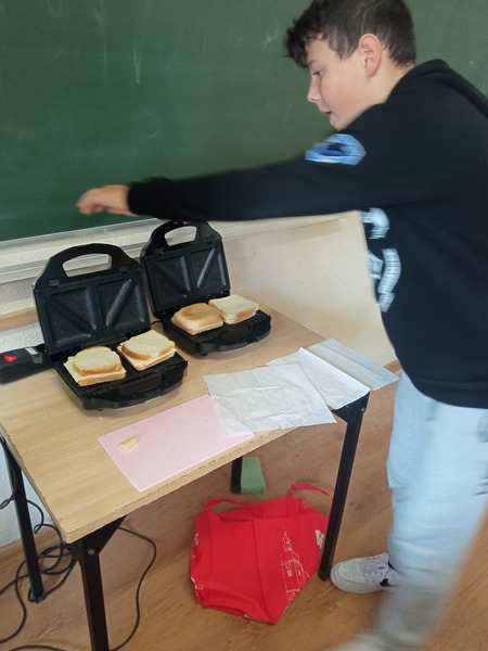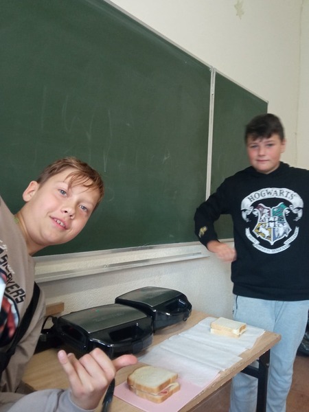 „Nasze drugie śniadanie w szkole” to jeden z tematów zajęć świetlicowych prowadzonych przez Panią Joannę Wierszel. Po zapoznaniu się z teoretycznymi podstawami zdrowego odżywiania i instrukcją obsługi opiekacza do kanapek uczniowie klas szóstych mieli okazję wykazania się w praktyce. Pod okiem nauczyciela szóstoklasiści przystąpili do przygotowywania chrupiących tostów. Były tosty z pieczywa pszennego i pełnoziarnistego, z różnymi dodatkami. Na zajęciach wykorzystano sprzęt zakupiony w ramach programu #LaboratoriaPrzyszłości.