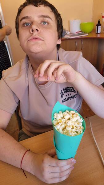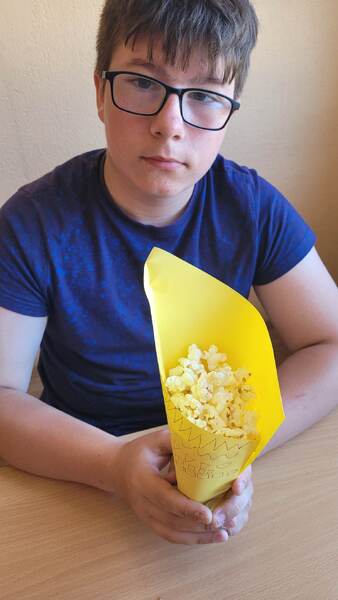 19.06.2023r. korzystając ze specjalnego urządzenia zrobili z ziaren kukurydzy popcorn.