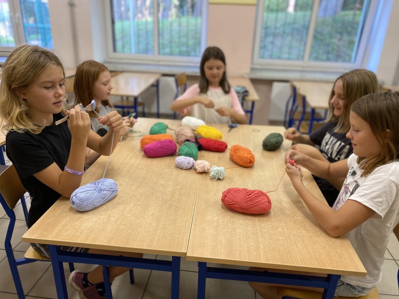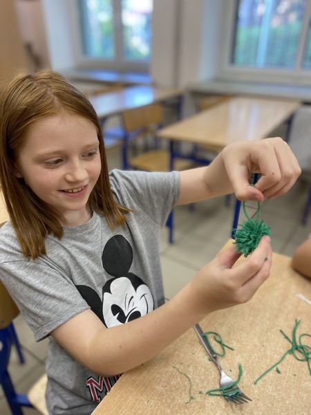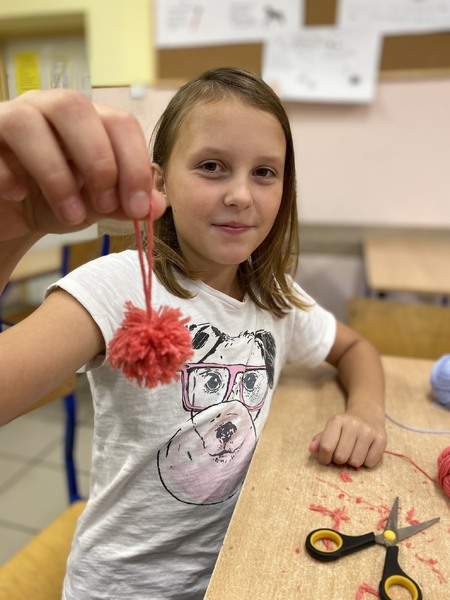 Zajęcia z wykorzystaniem narzędzi z projektu #LaboratoriaPrzyszłości ruszyły pełną parą. Na jednym ze spotkań kółka krawieckiego, uczennice klas 4 i 5 poznały rodzaje włóczek. Kolejnym krokiem było wykorzystanie ich i stworzenie ozdobnych elementów. Efekt? Piękne i kolorowe pompony, które będziemy wykorzystywać jako zdobienia na kolejnych zajęciach.