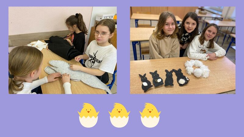 Wszystko to dzięki uczennicom zaangażowanym w zajęcia koła krawieckiego. Ich talent, pasja i kreatywność nie tylko ożywiły atmosferę, ale także wzbogaciły naszą szkolną przestrzeń o wyjątkowe dekoracje wielkanocne!